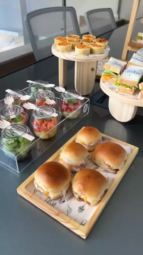 Mesa de coffee break para uma reunião de time #kathcestas #cafédamanhã #Criadordeconteúdo #coffeebreak #cestasdecafédamanhã