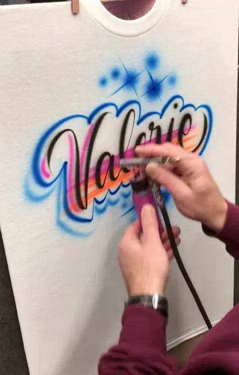 Design de nome aerógrafo em uma camiseta # aerógrafo # caligrafia # arte # valerie