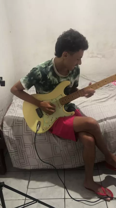 Kel tocando a música de chaves