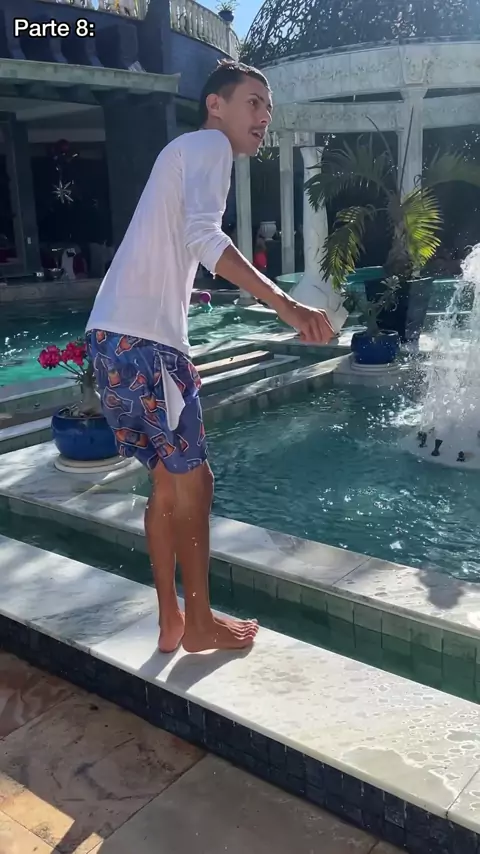 Kel tomando banho de piscina