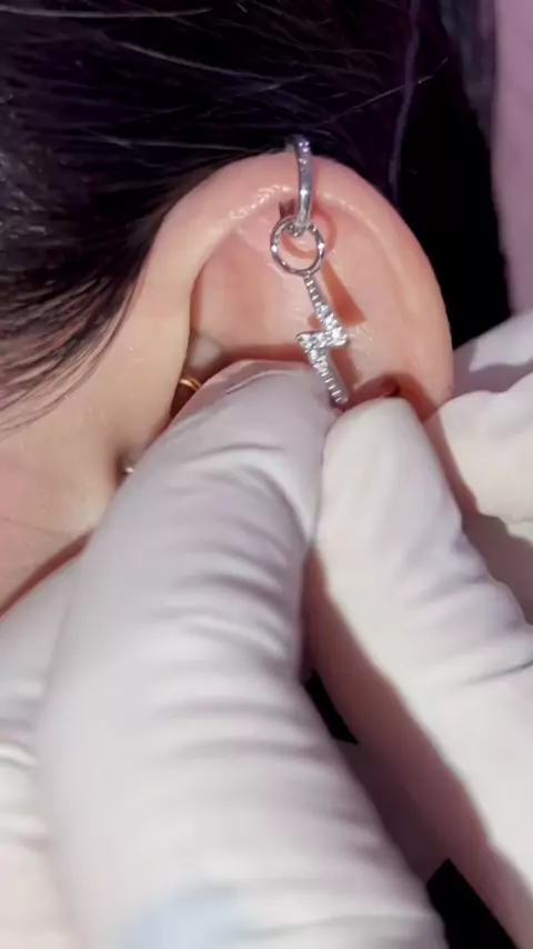 Change earrings from yellow to white#changepiercing#earpiercing#piercing#piercings#piercingvideo#piercinglovers#piercingstudio#piercingcheck#piercingsof#vairal##allfake