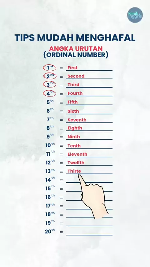 Sebutin angka urutan dalam bahasa Inggris, jangan lupa cek link di bio #grammar #vocabulary #klinikinggris #kursusbahasainggris