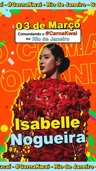 Olha quem tá chegando no Rio! 👀✨ A rainha de Parintins, @Isabellenogueirareal, vai levantar o Sambódromo Marquês de Sapucaí no #CarnaKwai! 🎉💃 📅 Dia 03 de Março promete ser pura emoção e muita folia! Já baixou o app? Não perde tempo e acompanhe tudo com shows ao vivo e conteúdos exclusivos. Carnaval assim só pode ser #BomPraKwai! 🧡🎭 #CarnaKwaiComigo #RiodeJaneiro