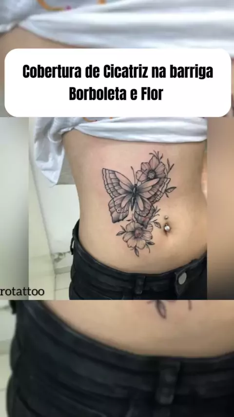 Cobertura de Cicatriz na barriga Borboleta e Flor. #kwaimoda #tatugem #tattoo #fashion #viral