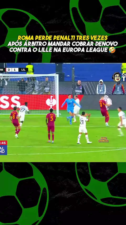 Roma perde penalti tres vezes após árbitro mandar cobrar denovo contra o Lille na Europa League 🤣 #esporteviral #europaleague #romaxlille