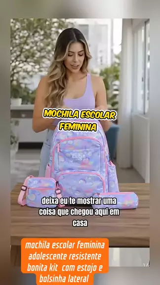 mochila escolar feminina adolescente resistente bonita kit Lojinha do Kwai