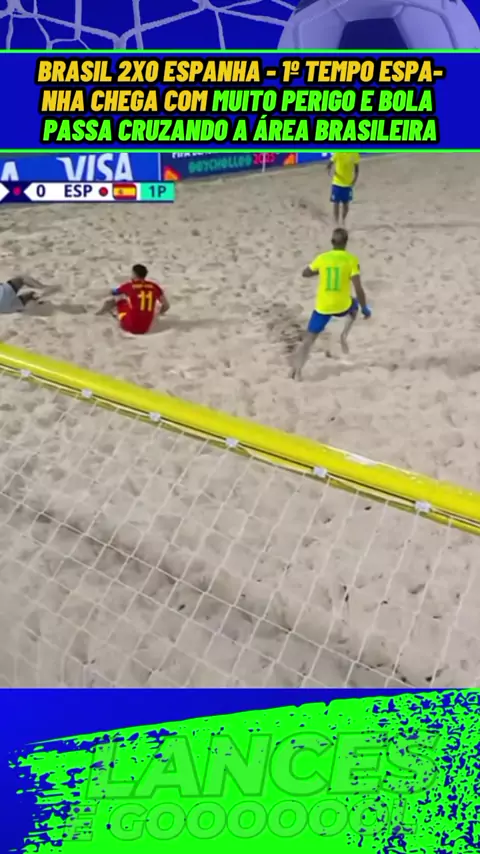 Brasil 2x0 Espanha - 1º tempo Espanha chega com muito perigo e bola passa cruzando a área brasileira#brasil #espanha #brasilxespanha #esporte #copadomundodefuteboldeareia