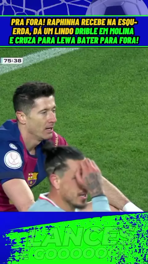Pra fora! Raphinha recebe na esquerda, dá um lindo drible em Molina e cruza para Lewa bater para fora!#Barcelona #atleticodemadrid #barcelonaxatleticodemadrid #copadorei #esporte