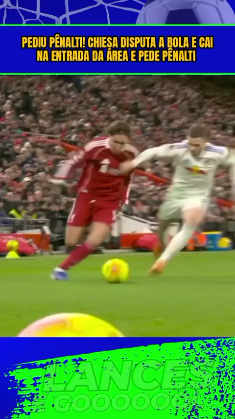 Pediu Pênalti! Chiesa disputa a bola e cai na entrada da área e pede pênalti #LiverpoolxLeeds #Liverpool #esporte #Esporteviral #PremierLeague