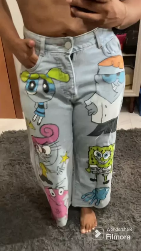#CarnaTeleKwai #Calabreso #customizacao #calça #Desenhos Calça quase finalizada tô amando o resultado 🤭🤭🫶🏽