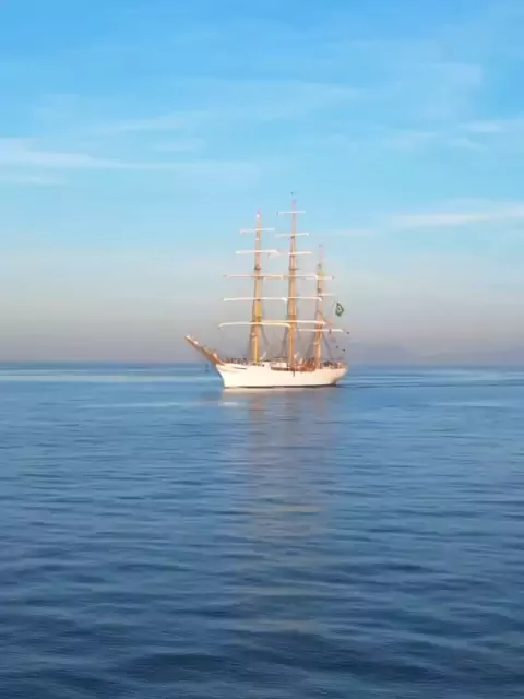 Caravela Cisne Branco em em Santos! 🤩⛵ #Microfoneabertonokwai #interessante #barco #oceano #MinhaCidade