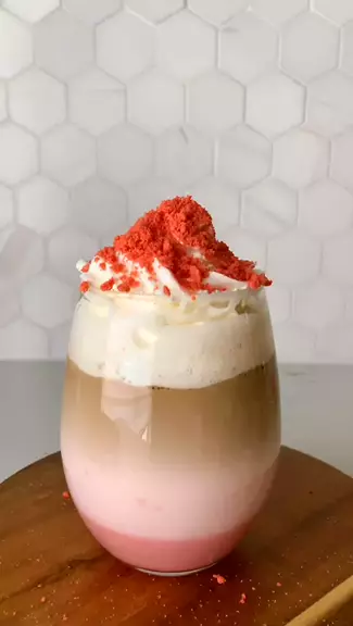 How to make a pink pink boom. Pink Oreo + hot milk- Stir + coffee +’whipped cream + smashed pink Oreo #drink #drinks