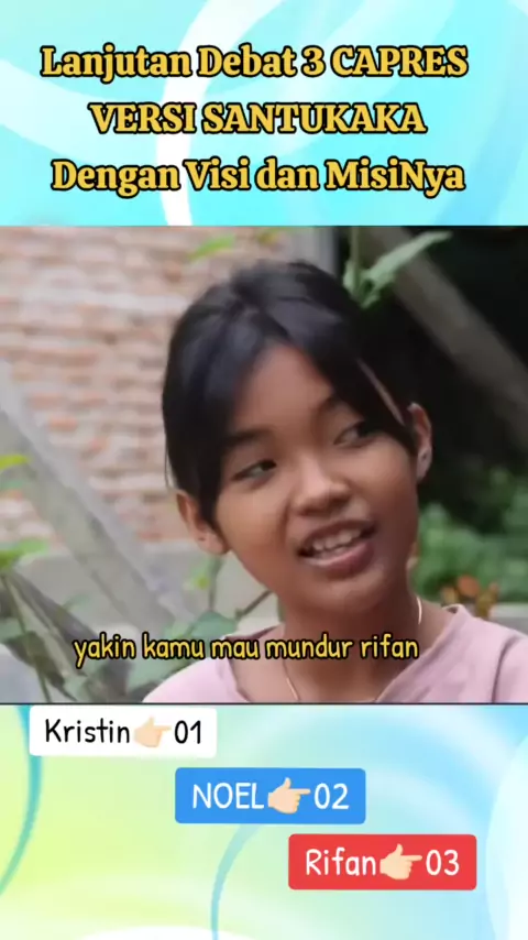 Lanjutan Debat 3 CAPRES VERSI SANTUKAKA Dengan Visi dan MisiNya #3capres #santukaka #yt #Viral # #Debat #versi #noel #prabowo #Rifan #Ganjar #kristin #Anies #pemiludamai