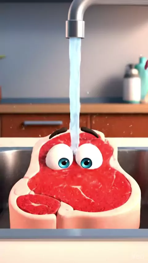 Até o bife sabe que banho de pia é cilada! 😂🧼 Água na carne = bactérias na pia. Deixa que o fogo cuida de tudo! 🔥🥩 #cozinha #foodhacks #dicas #humor #culinaria