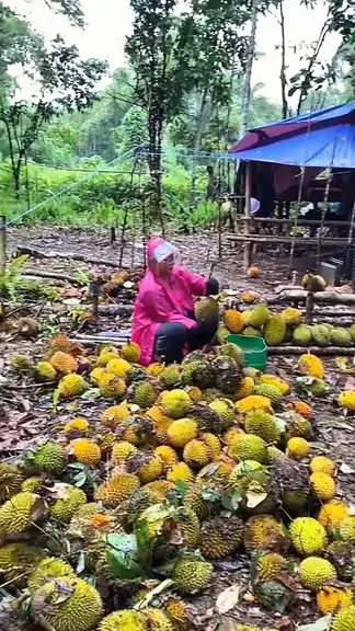 Bersihkan buah durian yang baru saja dipanen #durian