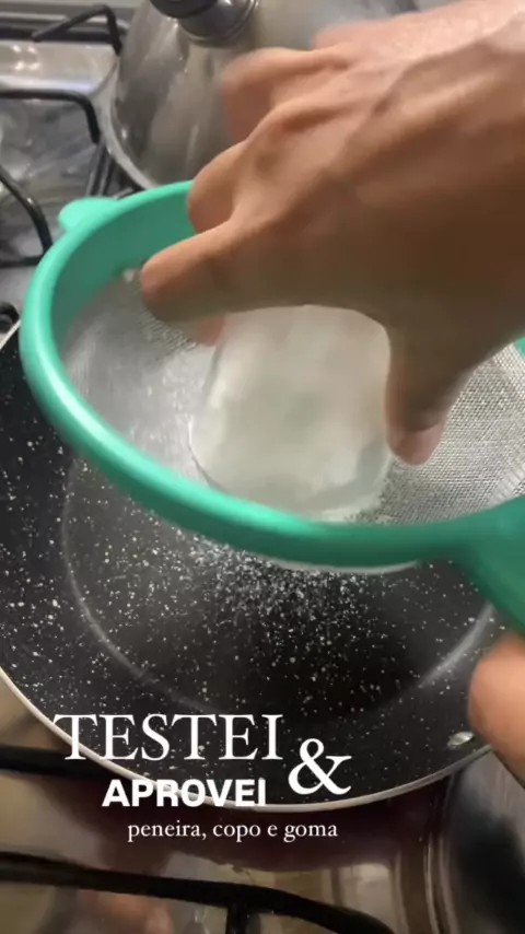 Peneirar goma é muito chato, testei passar na peneira com a ajuda do copo e amei a dica. #tapioca #goma #nordeste #coco #dicaboa