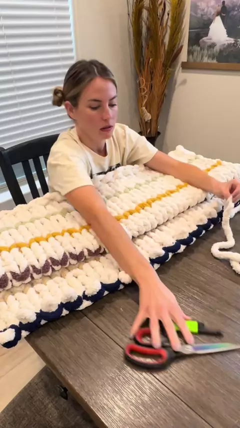 Manifestando que isso é visto por Taylor e ela me deixa enviar-lhe este cobertor para abraçar entre suas paradas da turnê Eras! Coisas mais loucas aconteceram? # # # # fingerknitting # # chunkyblankettutorial # # handknitblanket # # falldecor # # diyhomedecor # # etsycreatorco # # chenilleblanket # # armknitting # # diycrafts # # handknit # # taylorswift # # erastour