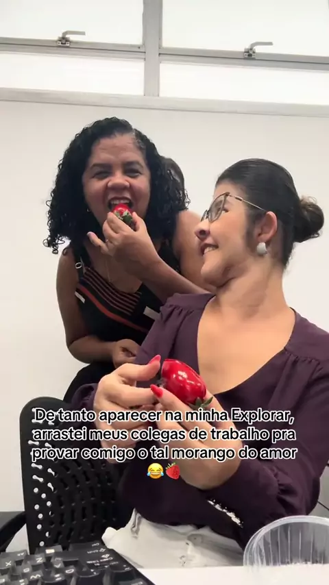O tal do morango do amor me venceu, viu? 😂🍓 Levei até os colegas de trabalho pra experimentar! E vou te contar… valeu cada mordida! Já provaram essa delícia? Me conta aqui nos comentários! 👇🍓