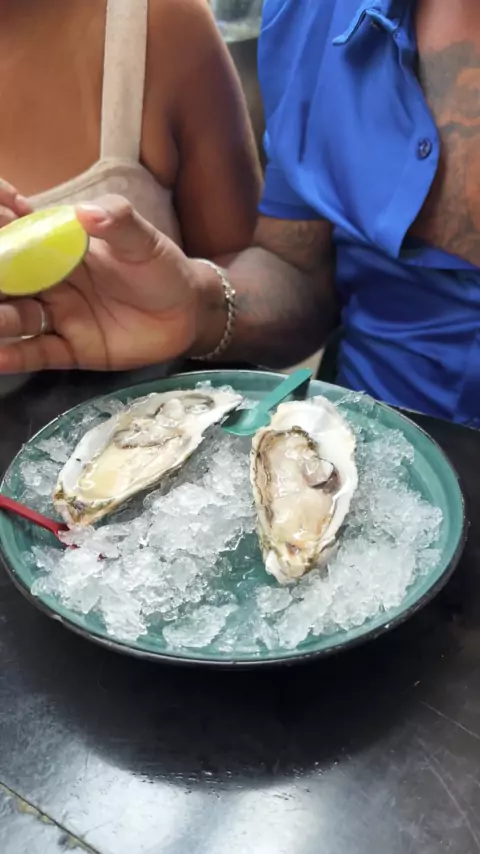 Comendo ostras pela primeira vez.#meireloren