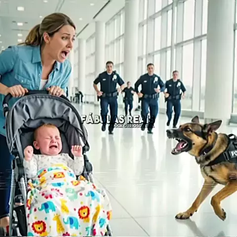 CÃO POLICIAL PULA EM CARRINHO DE BEBÊ NO AEROPORTO — O QUE CAI DE LÁ FAZ TODOS OS AGENTES CORREREM...