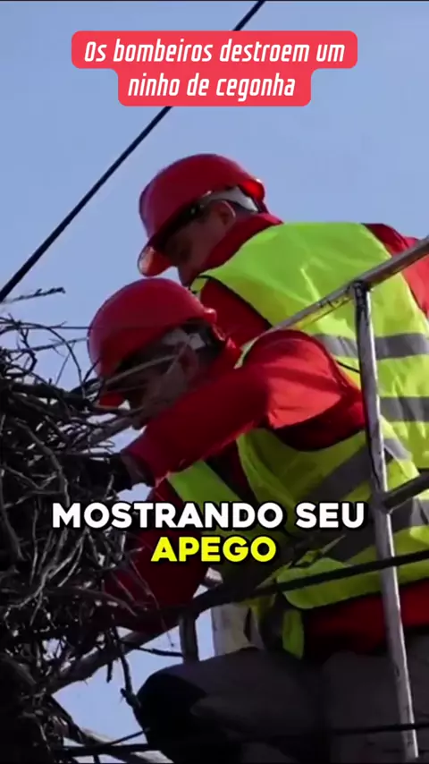 Tadinha da cegonha. #Cegonha #Bombeiro #Ninho #MelhorarComFamília #KwaiNoticia More