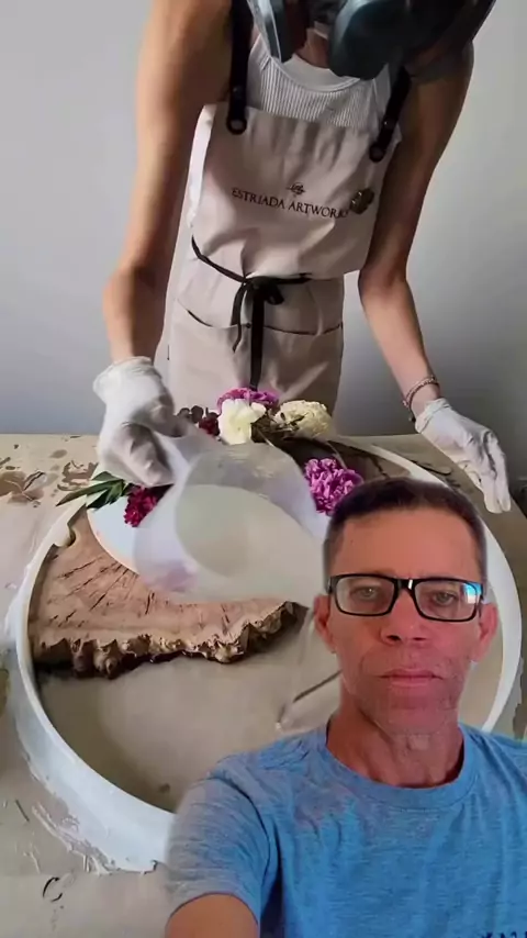 Mesa feita de madeira/resina com galhos e flores 🌺 #entaoenatal