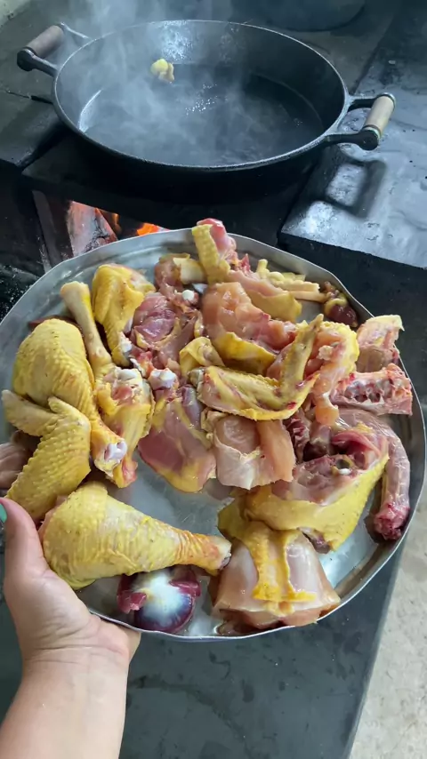 Galinha caipira pro almoço aqui na roça!