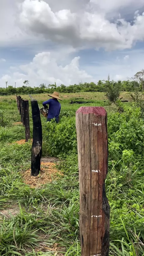 Fazendo acabamento em cerca para gado