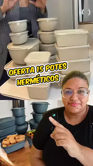 kit 15 potes herméticos com tampas resistentes pode ir ao freezer ao micro-ondas.