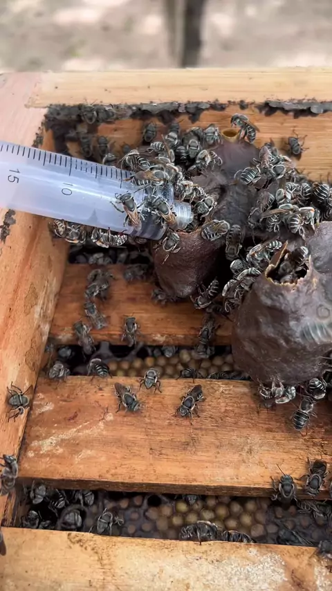 No Meliponário, cuidamos das abelhas nativas com dedicação! 🐝🌿 Quer aprender mais sobre criação de abelhas sem ferrão? Me siga para dicas e conteúdos exclusivos! #AbelhasNativas #Meliponicultura #Sustentabilidade