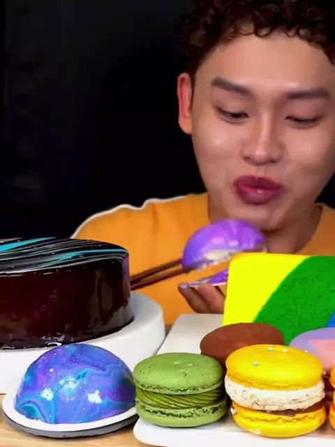 Galaxy Chocolate Cake with Rainbow Macaron Cream Roll mukbang ~!! # asmr # mukbang # bonggil # mukbangbonggil # delicadeza # foodchallenge # delicious # trending # food # mukbangasmr # cake # trending # explore # eating # ėviral # eatingshow # asmrsounds #