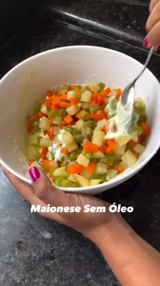 Maionese sem óleo, feita com azeite, super fácil de fazer 🙌🏼 Todo o preparo já foi feito direto na vasilha de servir ✌🏼 Cozinhe os legumes da sua preferência (usei batata, cenoura e vagem) RESERVE - 3 ovos cozidos (somente 1 deles com a gema) - 1/2 limão espremido (Esqueci de citar na narração 😢) - 3 colheres de sopa de azeite - 2 colheres de sopa de água morna - 1 dente de alho já amassado pra facilitar na hora de bater. - Sal a gosto Bata muito bem até sumir todos os pedacinhos do ovo.