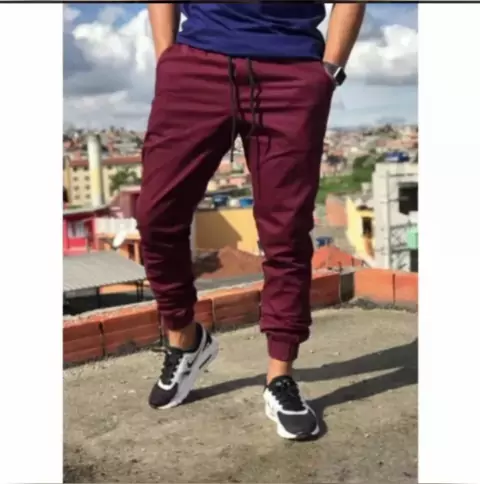 Calça Sarja Masculina com elástico na panturrilha.