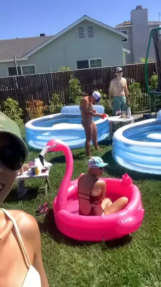 Happy 4th of July! We couldn’t go to the beach so instead we sat in inflatable pools on a lawn lol#4thofjuly
