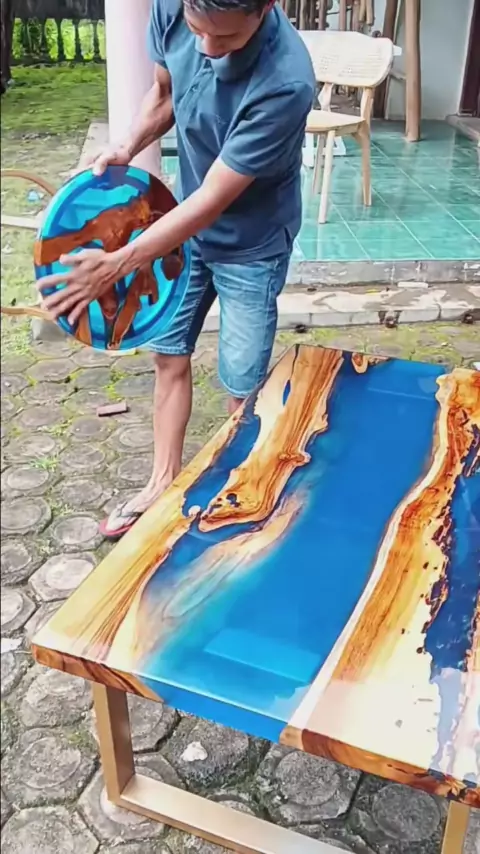 selesai meja tamu biru transparan...#jeparawoodresin #mejaresin #tableresin #resinart #epoxyresin #hardwork # #trending #viral