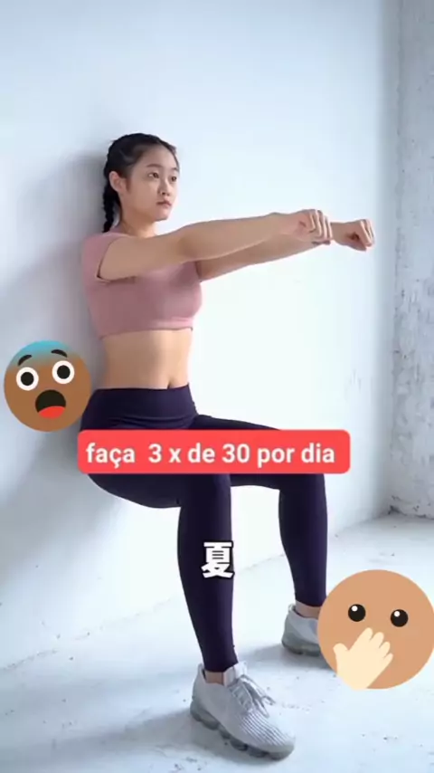 Agachamento na parede Comece encostando as costas em uma parede, mantenha os joelhos dobrados de forma perpendicular, mantendo os pés mais à frente (como se estivesse sentado em uma cadeira). Fique nessa posição por pelo menos 30 segundos e depois repita o processo. #agachamento #exercícios #naparede