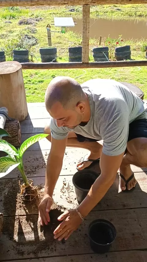 Que bom que eu faço substrato sobrando né gente , pois o vento derrubou algumas plantas, e agora irei REPLANTAR e vou aproveitar fazer a troca de vaso e dividir a touceira da PEPEROMIA melancia #mudinha #jardim #planta