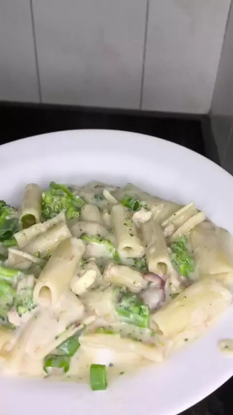 Macarrão com brócolis e bacon ao molho branco,top demais! #Receita #EBoracomer #comida