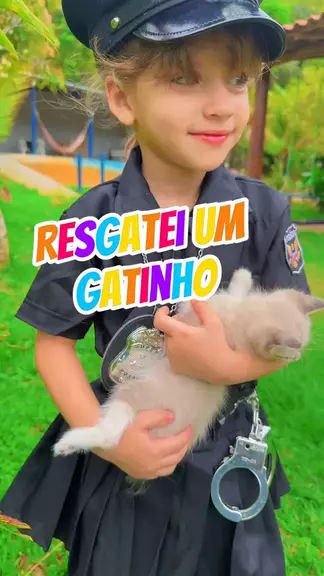 Sou uma policial, estou resgatando um filhotinho de gatinho.
