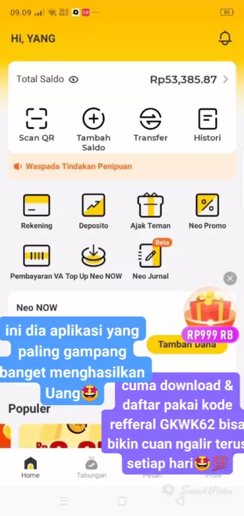 yuk semangat pejuang receh🤩 cuma download apk Neo+ diplaystore dan daftar pakai kode refferal GKWK62 bisa dapetin Cuan banyakk loh💯🥰 #fyp #pejuangreceh #refferalGKWK62