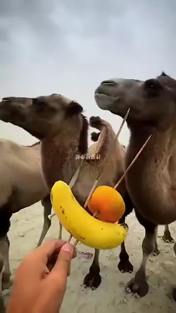 Alimentando esses camelos #camelos #animais #kwai
