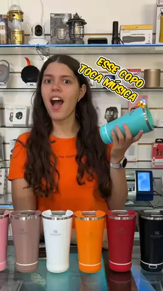 Olha que legal 😱esse copo Stanley que toca música 🎶 Além de conservar sua bebida geladinha 🧊, você pode sair por aí escutando sua música favorita!