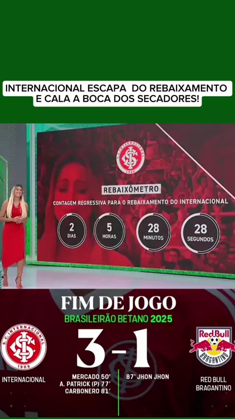INTERNACIONAL ESCAPA DO REBAIXAMENTO E CALA BOCA DE SECADORES #internacional #bragantino #internacionalxbragantino #brasileirão2025 #esporteviral
