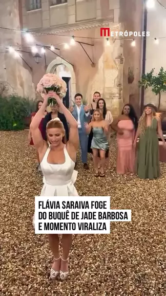 Um vídeo da ginasta #FláviaSaraiva, no casamento de #JadeBarbosa, viralizou nas #redessociais nesta terça-feira (8/10). Na registro, a atleta aparece fugindo do buquê de noiva da amiga, reproduzindo um #meme conhecido na web. A gravação mostra o momento em que Jade se prepara para o tradicional momento de jogar o buquê e várias mulheres se reúnem atrás para tentar pegar as flores, inclusive Flavinha. #KwaiNotícias