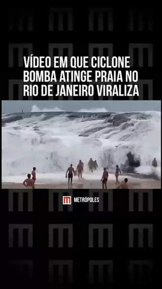 Vídeo em que #ciclone bomba atinge praia no #RiodeJaneiro viraliza. Nas imagens, banhistas se assustam com a força da #água causada pelo ciclone bomba e são instruídos por um salva-vidas a se afastar #KwaiNotícias