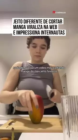 😲 🥭 Uma moça chamou a atenção nas redes sociais ao mostrar um jeito inusitado de cortar #manga. Primeiro, ela corta a #fruta com #casca em retângulos. Depois, utiliza um copo para retirar a casca, deslizando os pedaços na borda do vidro de forma prática e eficiente. E você, já tinha visto essa técnica antes? 🤔 #kwainotícias 📸 @brna.lima (tk) | @myhoodbr