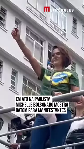 A ex-primeira-dama, #MichelleBolsonaro, mostrou um #batom para manifestantes ao subir no trio elétrico para participar do ato pró-anistia na Avenida Paulista, em #SãoPaulo. A manifestação acontece neste domingo (6/4) e foi convocada pelo ex-presidente Jair #Bolsonaro. #kwaiNotícias 📹 Danilo Yoshioka/Especial Metrópoles