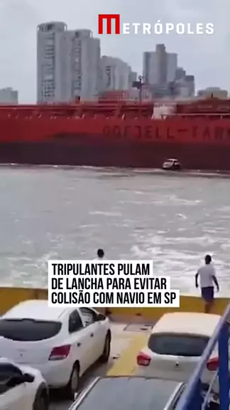 Duas pessoas saltaram de uma #lancha à deriva no mar para evitar colidir com um navio de grande porte. Em vídeos que estão circulando nas redes sociais, é possível ver o momento em que os tripulantes se jogam na água e que a embarcação maior passa pela lancha. O caso aconteceu nas proximidades da travessia de veículos entre #Santos e Guarujá, em um canal do Porto de Santos, no #litoral de #SãoPaulo. #kwainotícias