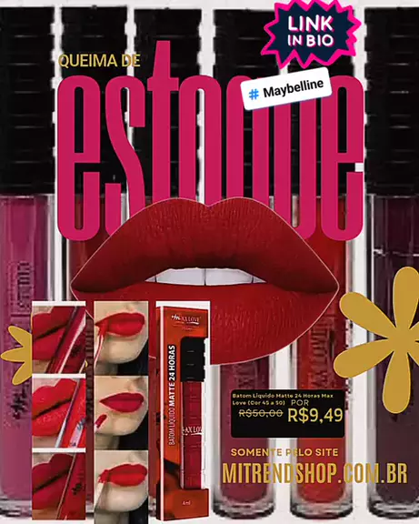 Batom Liquido Matte 24 Horas Max Love (Cor 45 a 50) #batomliquidomatte #maxlove #beleza #maquiagem #Duração24Horas #Maybelline