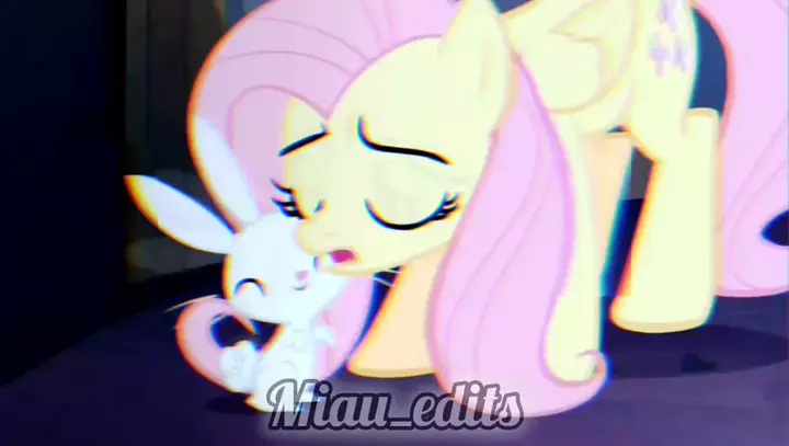 para a Páscoa fiz essa edição da fluttershy com o angel🐇❤️